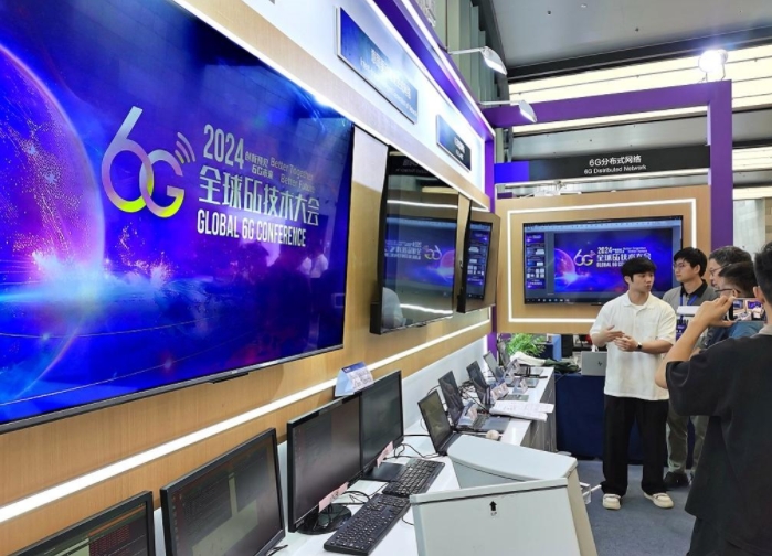 在全球6G技術(shù)大會(huì)前沿成果展現(xiàn)場,觀眾正在參觀6G分布式網(wǎng)絡(luò)、6G網(wǎng)絡(luò)架構(gòu)、6G衛(wèi)星通信接入組網(wǎng)技術(shù)等成果。