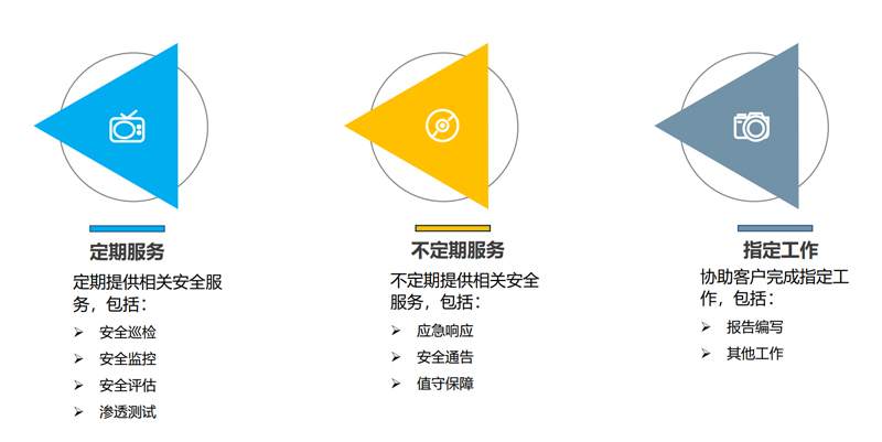 安全駐場服務,其本質是一個綜合安全服務組合包(具體可定制),主要包括每日安全巡檢服務,安全監控,日志分析發現安全漏洞后組織安全加固,出現入侵事件時進行應急響應,以及完成用戶交代的其他安全運維工作等。